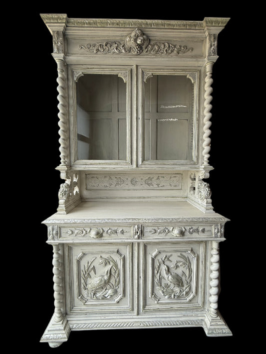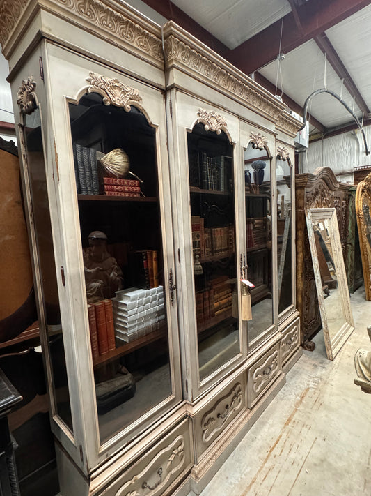 Painted Louis XIII Hunt Cabinet 57.5x25x98.5"h