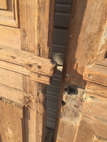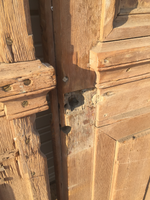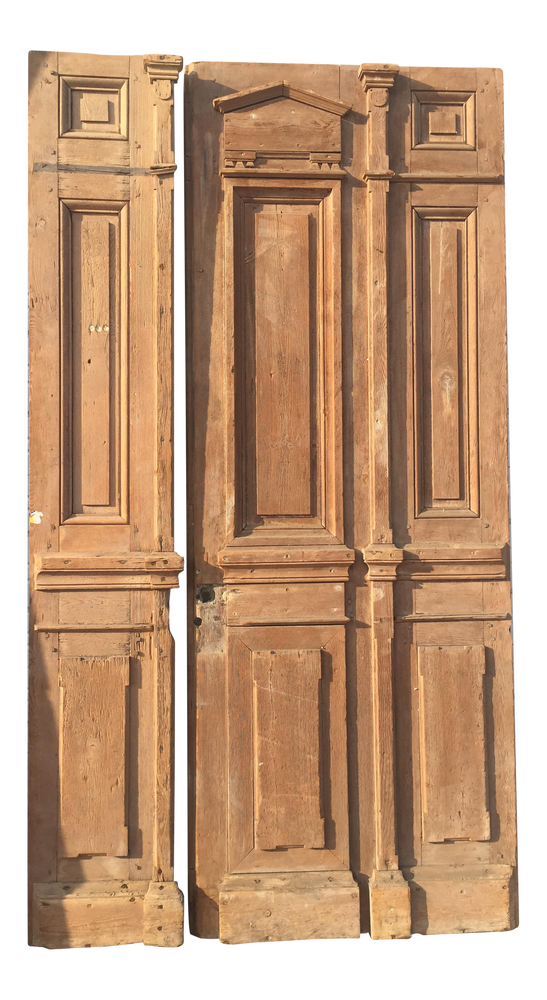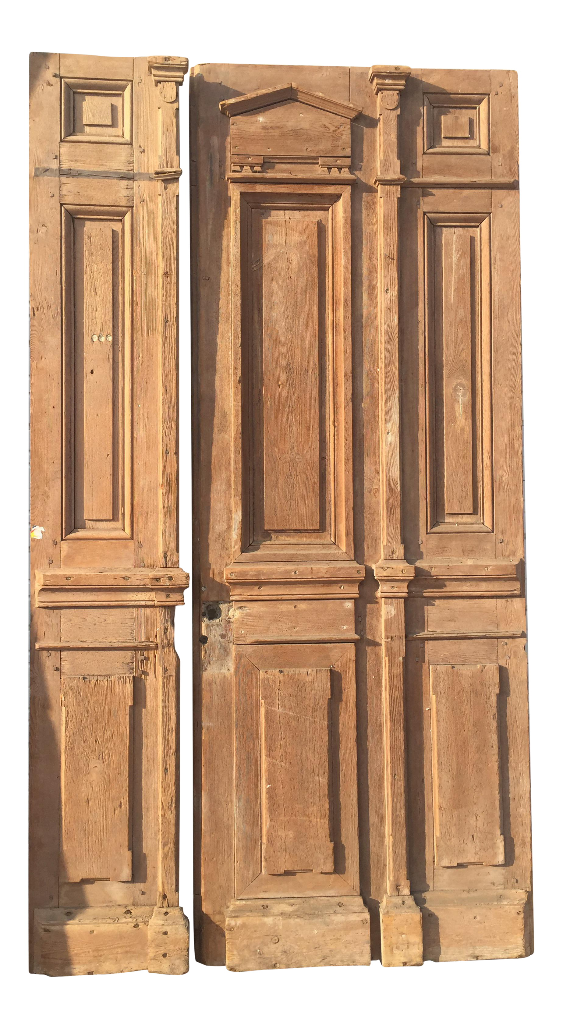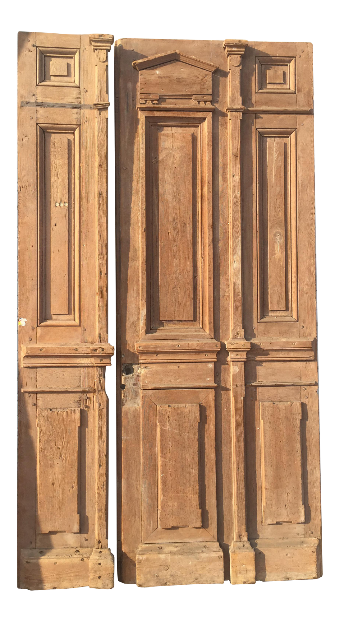 Gorgeous and very unique three-piece door unit from France. This would make a stunning architectural addition to your custom millwork project, in a garden, or just simply used as a focal piece. Original brass screws still intact! Very very cool!