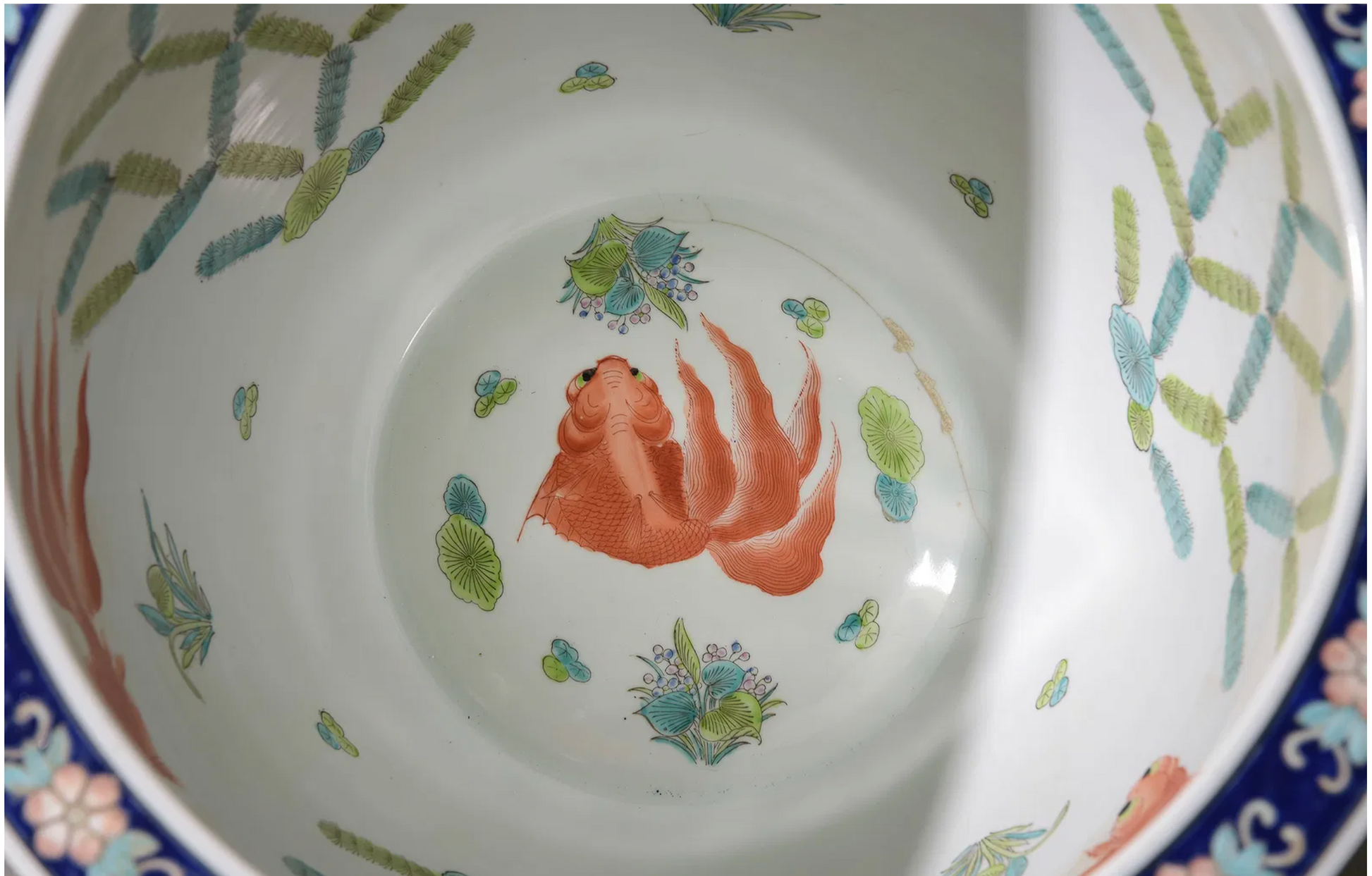 Asian Large Fish Bowl / Planter on Wood Stand - 26 in tall x 18.5 inch diameter with out the stand