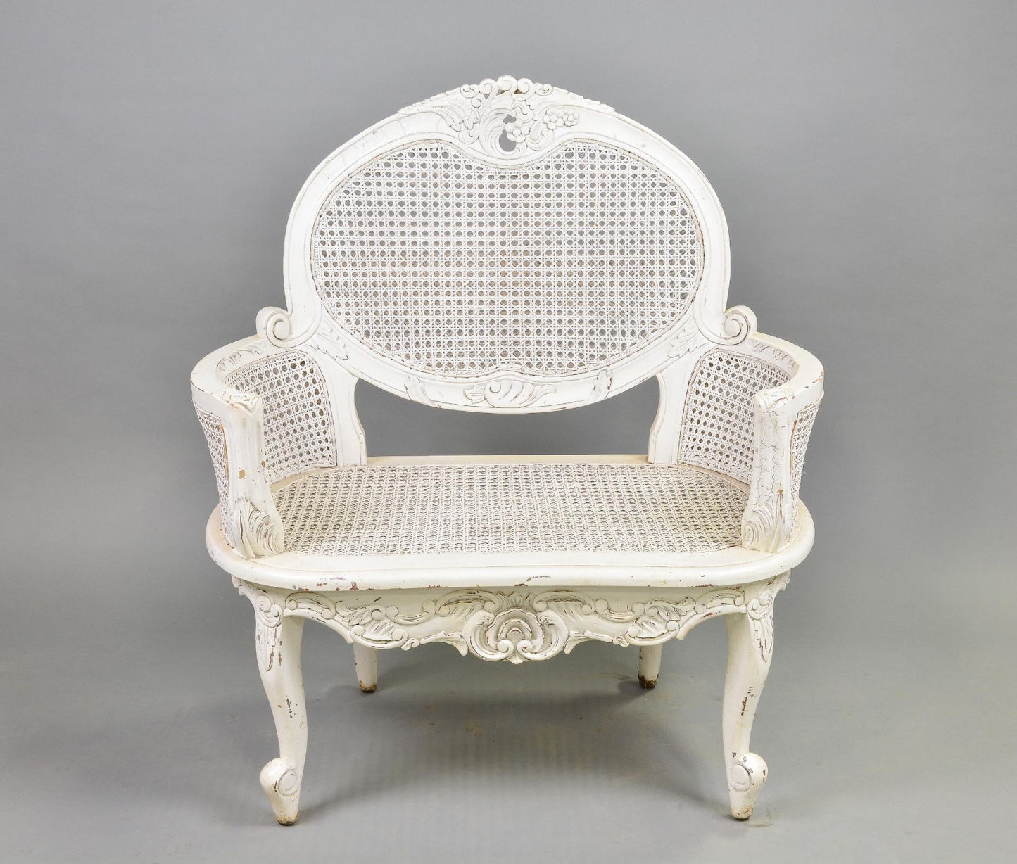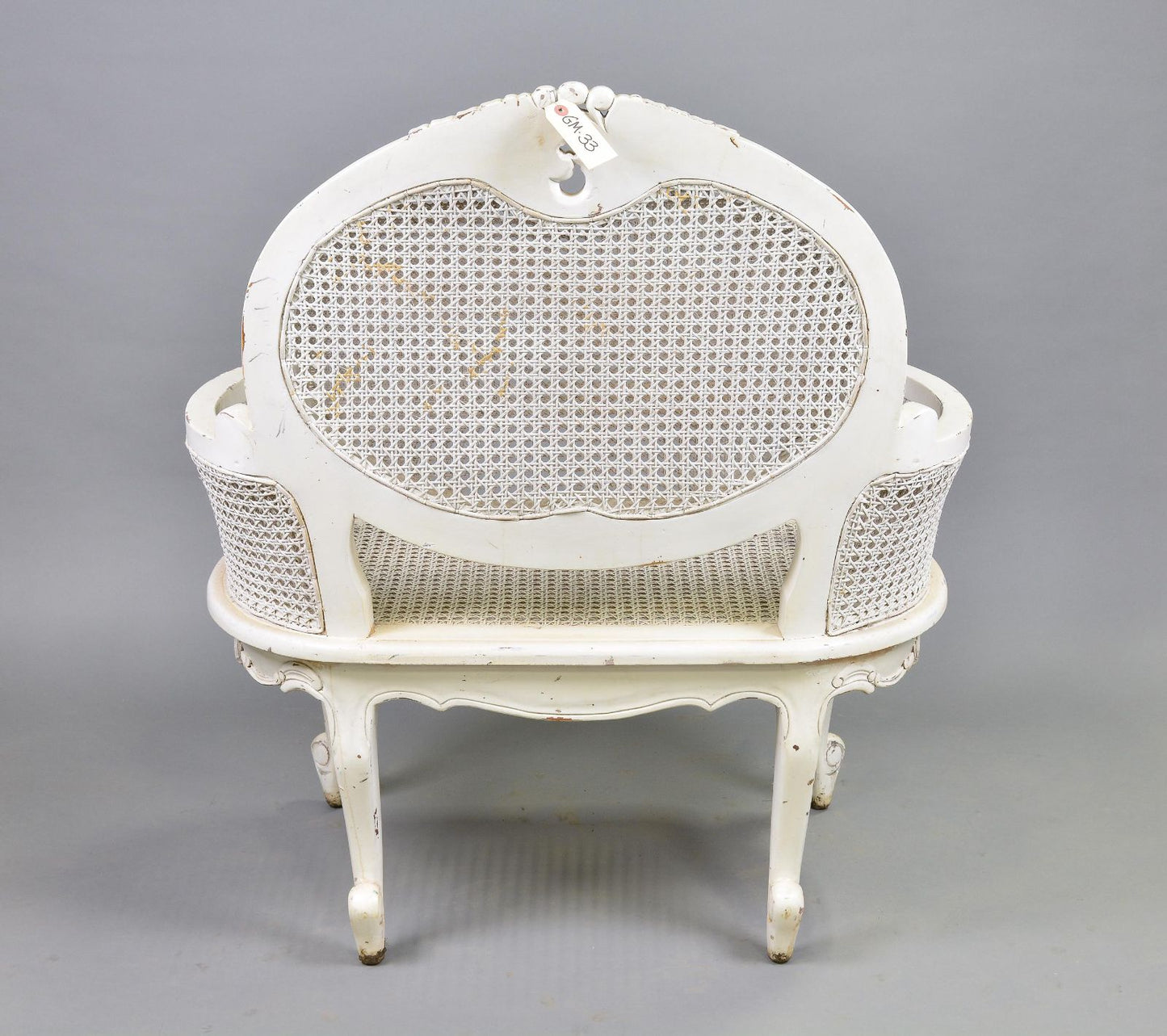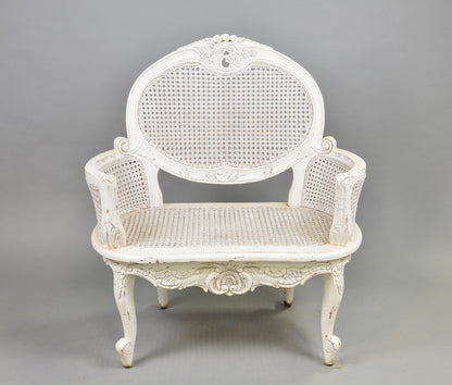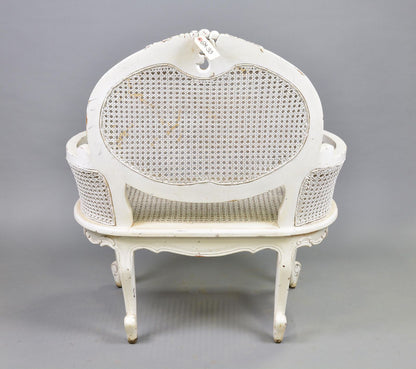 French Style Painted Caned Bench with Double Cane Sides and Back - 42 in tall x 37 x 27