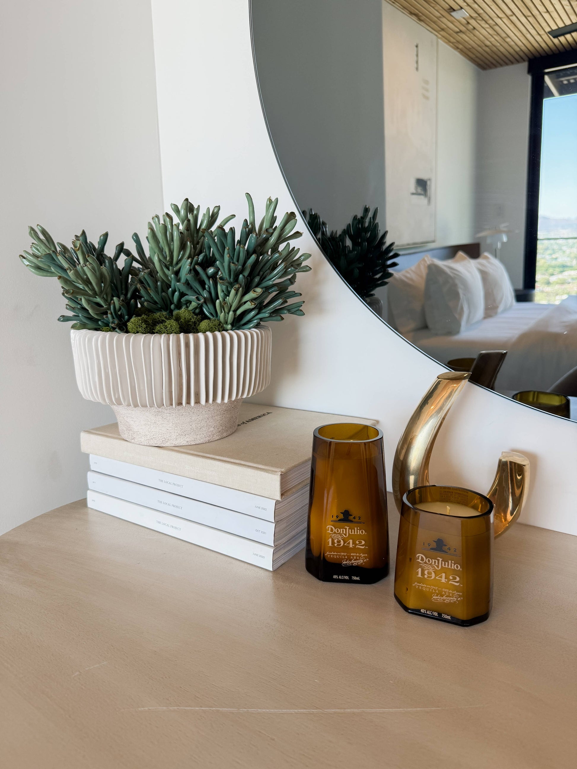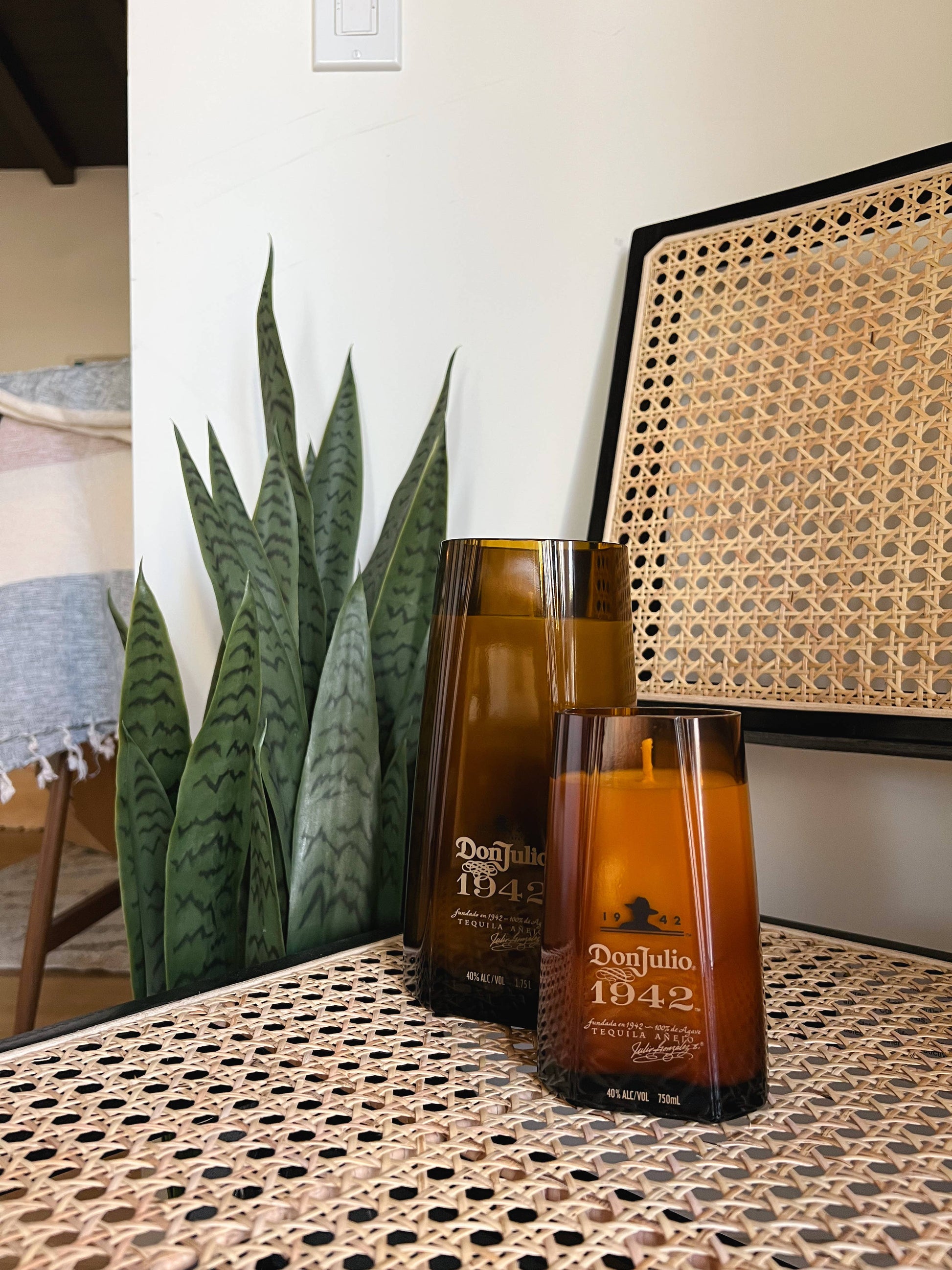 Hand poured and Handmade from locally Recycled* Bottles.