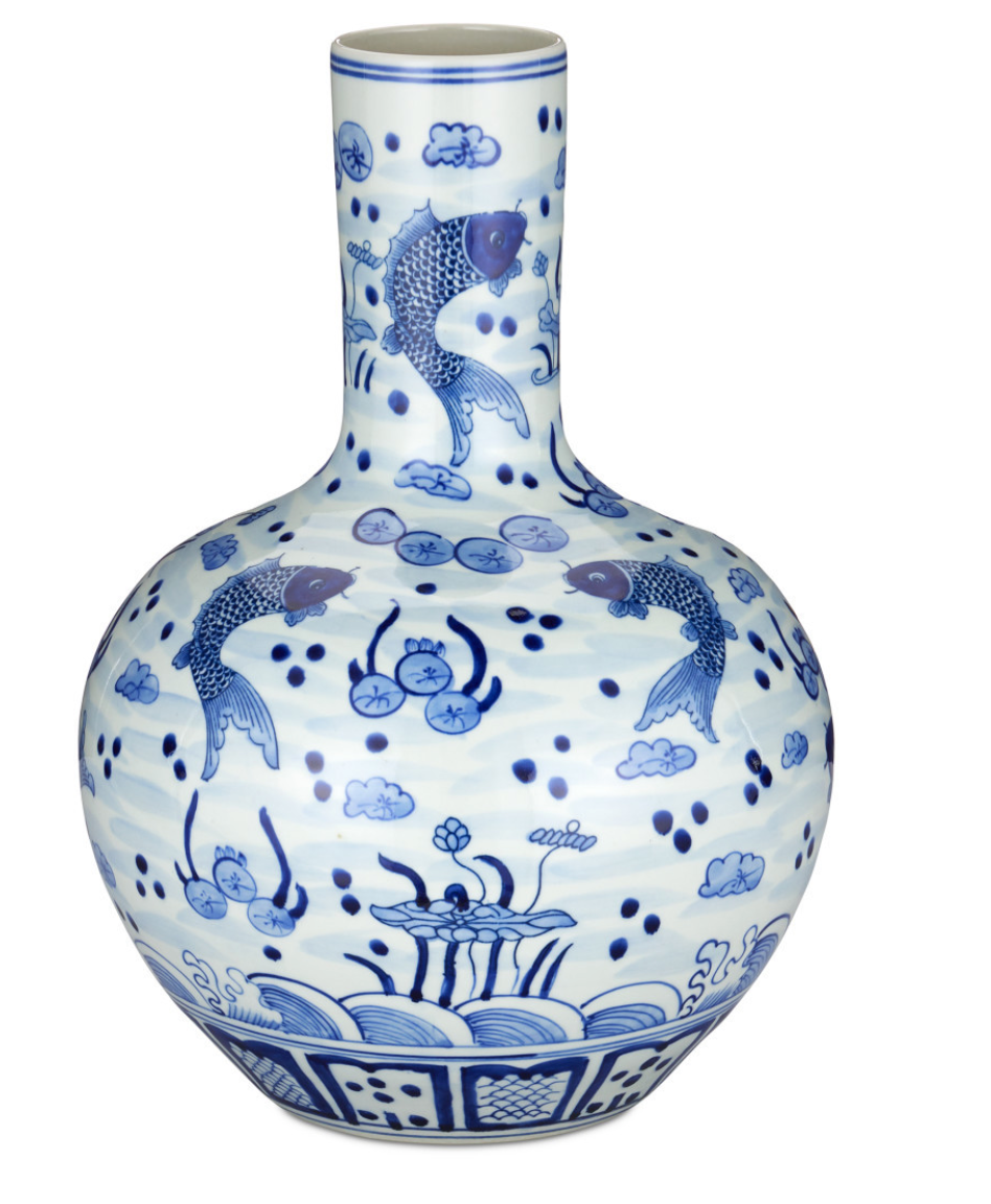 In the tradition of Chinoiserie that dates back to the great dynasties in Asia, the South Sea Blue & White Large Temple Jar is made of porcelain. The design tells its "story" in imperial blue motifs on an off-white ground. Because these are artisanal pieces handmade by families with generations of expertise, the color and pattern may vary slightly.